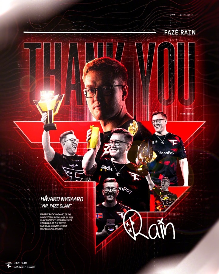 FaZe官方宣布雨神下放 共效力3541天 期间夺得19座重要赛事冠军_体育直播